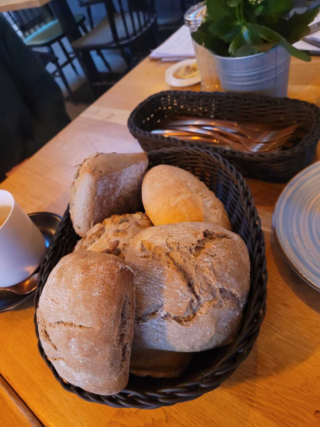 Zu jedem Frühstück gab es je zwei Brötchen zur Auswahl, wobei man zwischen dem hellen Lütten Brötchen, Mohnbrötchen, Sesambrötchen, Roggenbrötchen, Kübiskernbrötchen und Mehrkornbrötchen wählen kann. Die Brötchen werden hier frisch (auf)gebacken. Ich denke mal das dies aufgrund der Größe, Form und Beschaffenheit Backrohlinge sind. Man kann hier auf Vorbestellung zum Beispiel auch seine Sonntagsbrötchen für zu Hause holen.