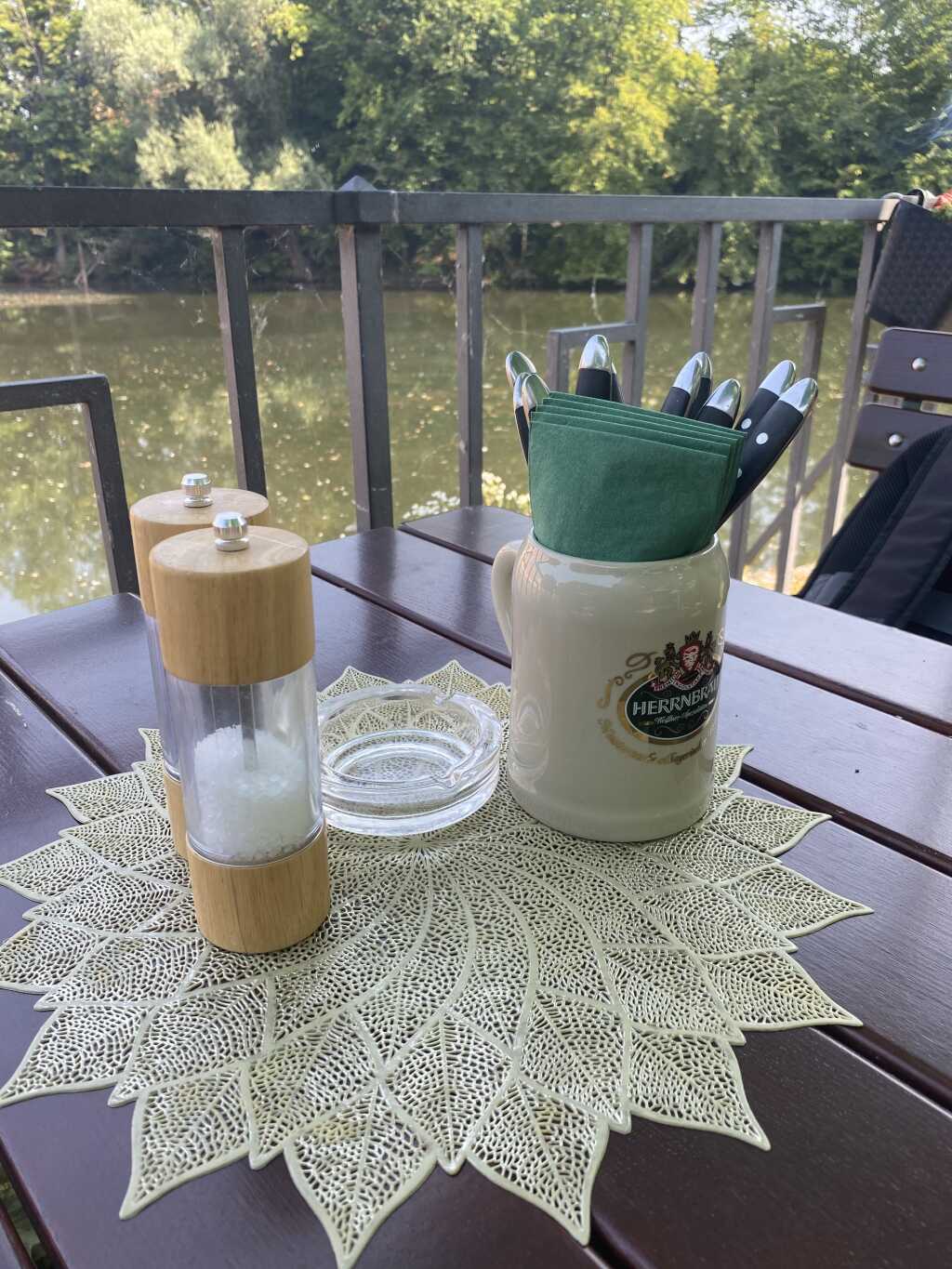 Nachdem wir die Outdoor Kunstausstellung im Kurpark angeschaut hatten und etwas gelaufen sind , war uns nach einer kleinen Pause mit Stärkung.