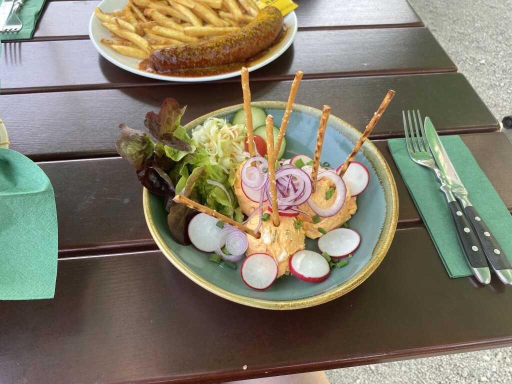 Das Lokal verfügt über einen großen gutbesuchten Biergarten in dem wir auch platz nahmen., nachdem man uns unfreundlich darüber aufgeklärt hatte das das Hauptrestaurant erst wieder um 17.00 Uhr öffne .