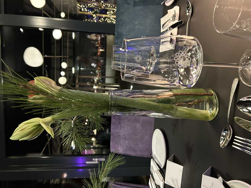 früher war da ein Café beheimatet. nun hieß es am Türschild "petit papillon", ein kleiner Schmetterling neu in Nordhorn. Jetzt benennen sich ja viele Cafés, Bistros mit französischem Namen, haben aber, wenn man dem auf den Zahl fühlt nichts mit französischer Küche am Hut. Ich nahm also die Änderung zur Kenntnis, auch den liebevoll gestalteten Außenbereich, ging aber weiter meiner Wege, bis mir am Ende des Stadtparks ein Koch mit Lastenrad entgegenkam. Das war beladen mit frischen Gemüse und fuhr Richtung Bistro. Nun wurde ich neugierig! Eine Küche, die ihre frischen Zutaten selber in die Küche fährt. Also umgekehrt, in den Gastraum, Karte angeschaut und spontan gefragt, ob für Samstag, den 6. Dezember noch ein Tisch für meine Frau und mich frei wäre. War es und so standen wir an besagtem Abend wieder vor dem Haus im Park.