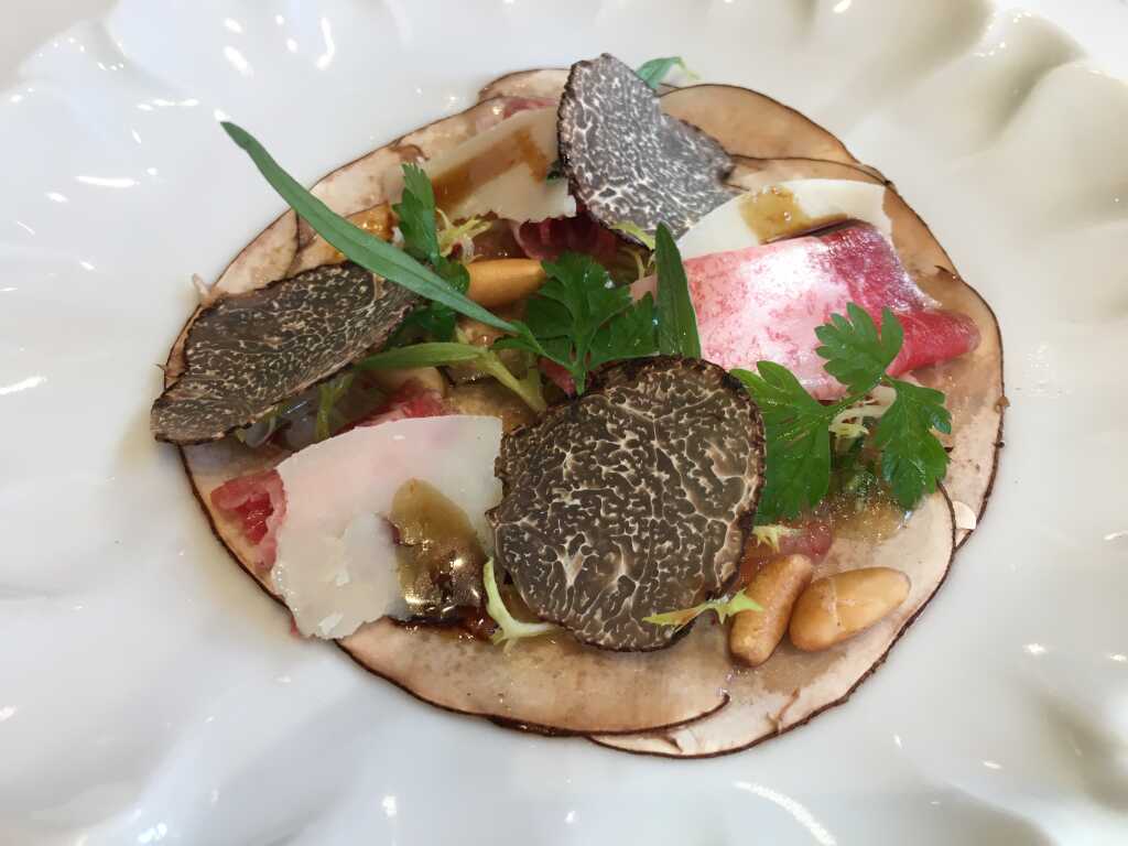Das Bisschen Schnittlauch und der Klecks Sahne obendrauf taten der tadellos abgeschmeckten Tomaten-Terrine überhaupt nicht weh. Da habe ich in einigen Osterien und Trattorien schon deutlich schwächere Pomodoro-Resultate vorgesetzt bekommen – und die zum doppelten Preis.
