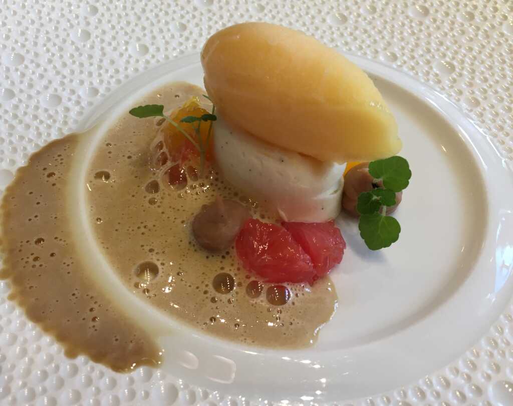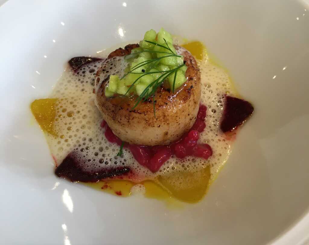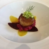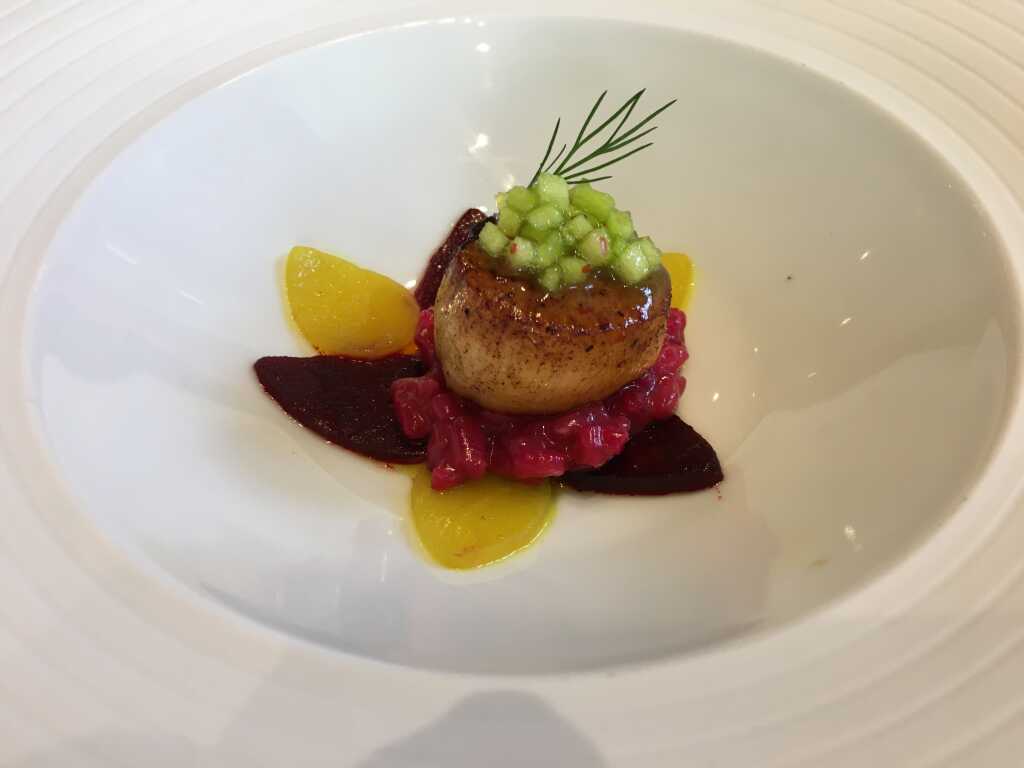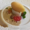 Die Tomatensuppe wurde in einer gewöhnlichen Suppentasse serviert und duftete mir „gin-geladen“ entgegen. Fein pürierte, reife Rotware, beherzte Würze und ein guter Schuss vom herben Wacholder-Schnaps ließen mich die Tasse mit Genuss auslöffeln.