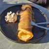 Das "Indochine"-Menü beginnt mit einer Frühlingsrolle als Amuse-Bouche - schön knusprig. Es folgt eine Vorspeisen-Variation: Lotte, mit Thunfisch gefüllt, dazu eingelegter Ingwer sowie confierte Zwiebeln und Feigen. Als zweite Komponente ein in Roter Bete marinierter Lachshappen auf einem Algenbett, gefolgt von einer Crème brûlée von der Gänseleber. Die Komposition überzeugt farblich wie geschmacklich voll und ganz.