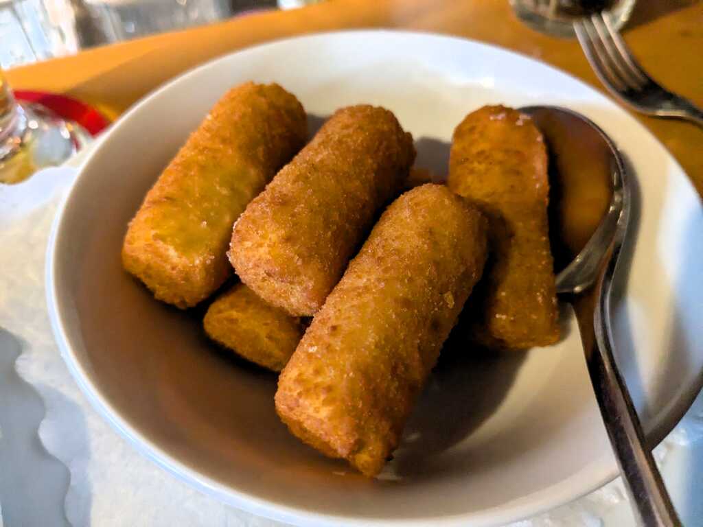 Unter den beiden schweinernen Bravourstücken befand sich eine helle Pfefferrahmsauce mit klarem Sahne- und Butterbekenntnis. In einer kleinen Schüssel befanden sich noch ein halbes Dutzend Kroketten. Beim Thema Sättigung schien man auf Nummer sicher gehen zu wollen.