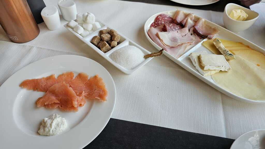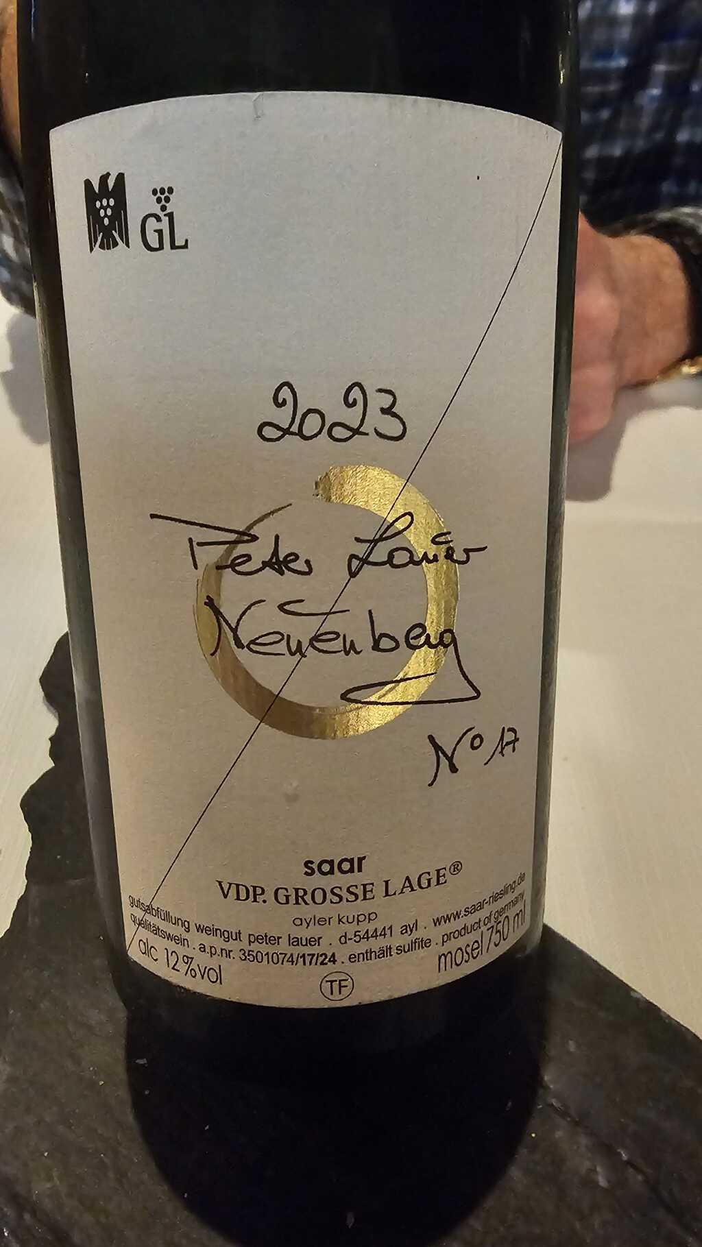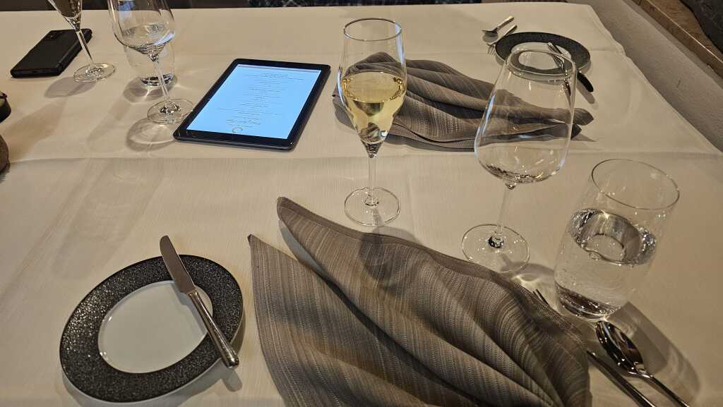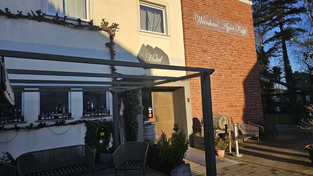 Das Weinhotel steht „Tür an Tür“ an dem VDP Weingut Peter Lauer. Am TIsch gab es eine tolle Beratung mit der Servicedame. Zum Weingut Lauer besteht wohl eine enge Verbundenheit. Wir entschieden uns für den empfohlenen Saar-Riesling, trocken-feinherb, 2023, vom Weingut Peter Lauer, € 56,00 /0,7 l.