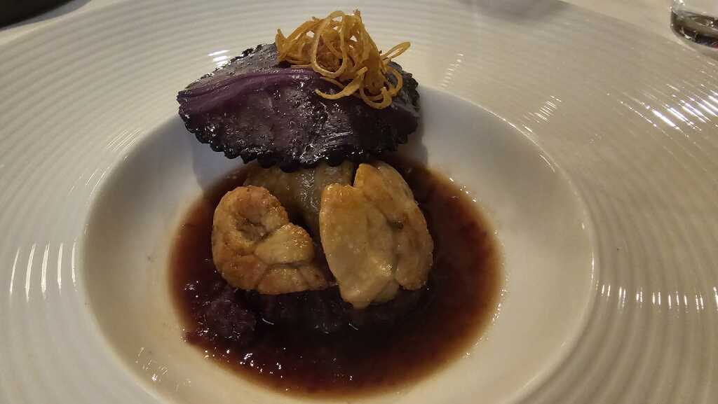 Gebratenes Kalbsbries, Rotkohl & Blutwurst (auf Wunsch für mich ohne Blutwurst)
