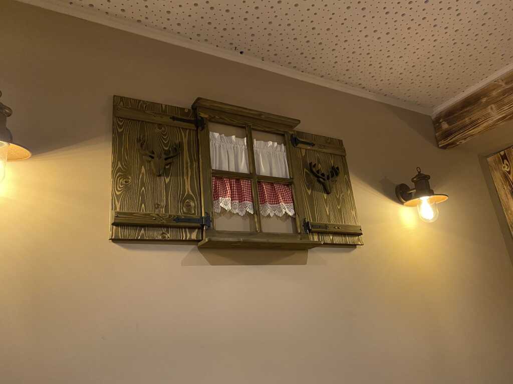 An der Wand sind kleine Fensterchen angebracht , auch mit Vorhang, wenn auch nur aufgebracht, es sah schön aus.