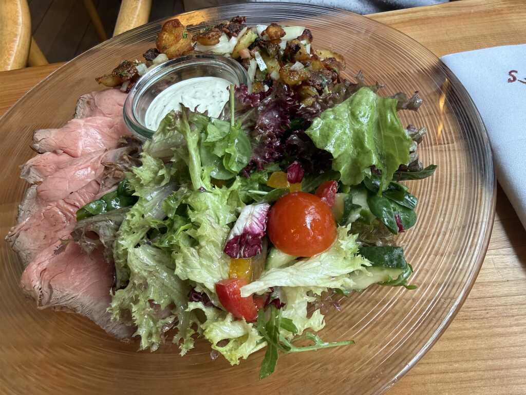 Die Steakstreifen waren zwar ordentlich vorhanden, aber auch ordentlich durchgebraten und zäh. Sie machten keine Freude. Die Nudeln waren gut zubereitet und hatten noch Biss. Die Sauce war in Ordnung. Die Angabe vom Spargel war interessant: Denn die Stückchen warten so winzig geschnitten, dass es auch Gürkchen hätten sei können. Der Geschmack war nicht vorhanden, aber die Teilchen hatten viel Biss. Ich war auch überrascht, dass grüner Spargel im günstigen Angebot verwendet wurde. In der Vergangenheit habe ich schon schmackhaftere Gerichte hier bekommen.