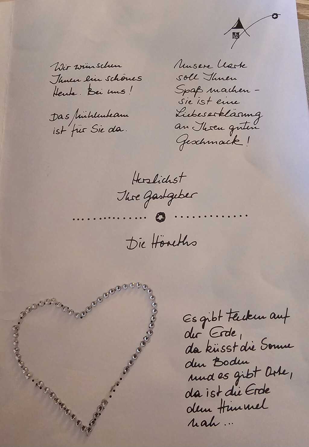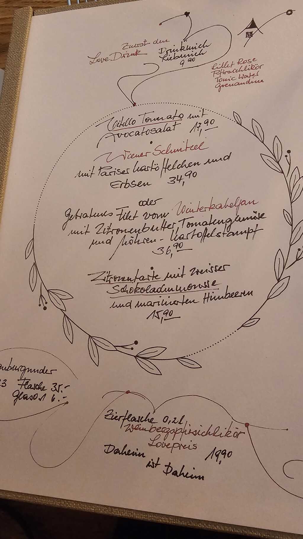 Begrüßung auf der Speisekarte