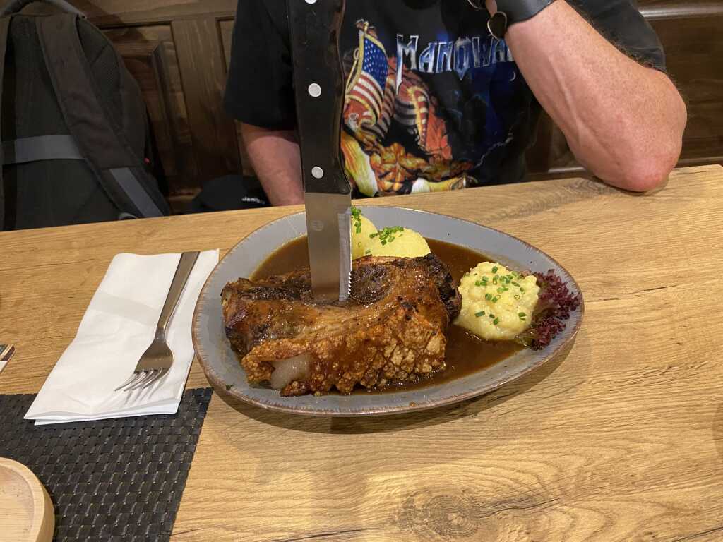 Das Schäufele bekam ein extra Messer mit dazu geliefert. Die Haut richtig schön resch und knackte herrlich im Mund, so soll es sein. Das Fleisch war super zart und saftig und löste sich super , fast von alleine vom Knochen. An würze fehlte es ihm auch an nichts.