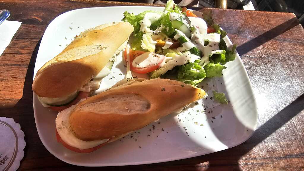 Ein kleiner Mittagssnack war erwünscht. Lange suchen wollten wir nicht.