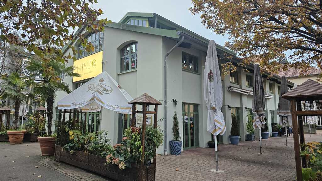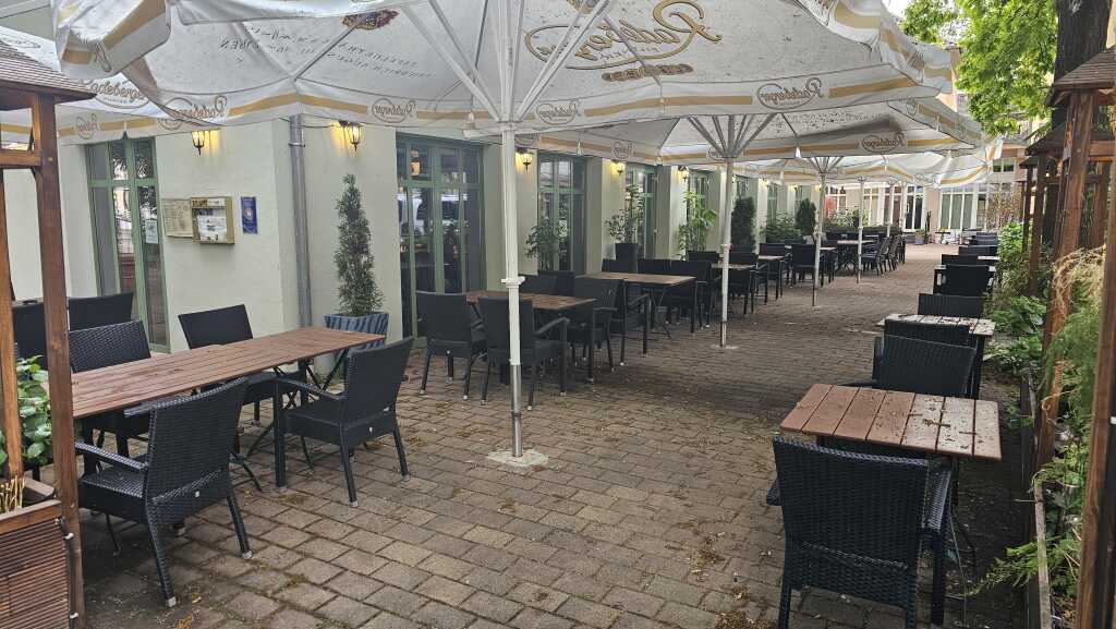 Wir hatten Glück und konnten im wunderschönen Außenbereich vor den hübschen Fachwerkhaus platz nehmen.