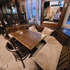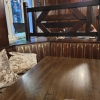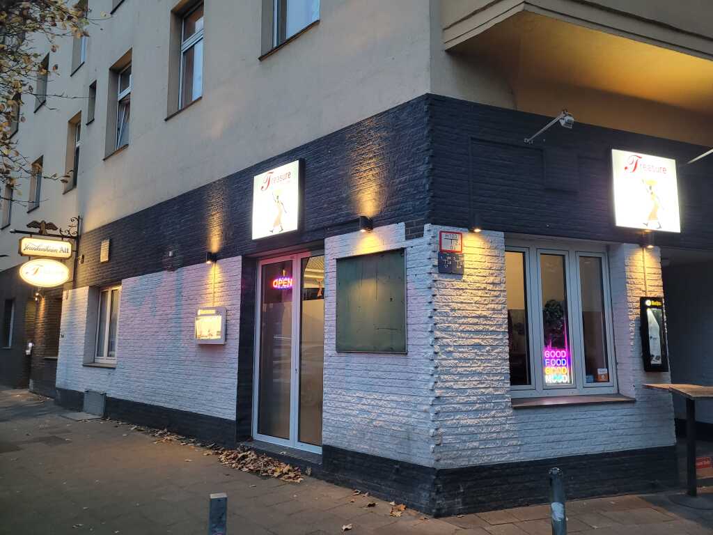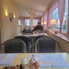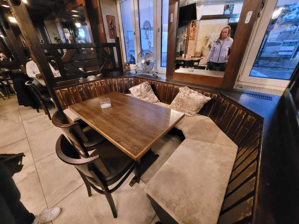 Nachdem wir das Restaurant betreten hatten, standen wir erst mal eine kleine Weile allein am Tresen, und warteten auf die Bedienung, das wir platziert werden können. Das große Restaurant war zwar komplettleer, aber die tische waren bereits für eine Weihnachtsfeier am Abend mit entsprechender Dekoration eingedeckt. Trotzdem bekamen wir Platz, man führte uns in den Wintergarten, der seitlich am Restaurant angebaut ist.