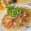 Dazwischen dann ein paar dünne Scheibchen frischer Paprika, wenig Zwiebel, von Tomate fast gar nichts zu sehen. In der Mitte des Pfannkuchens ein paar ringe Jalapeños, welche ganz klar nicht frisch waren, sondern aus dem Glas vom Supermarkt.