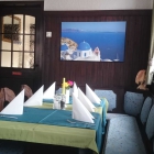Seit unserem letzten Besuch ist es deutlich bunter im Restaurant geworden. Kein wirkliches Farbkonzept, aber es sieht freundlicher aus. Denn Tische, Stühle, Theke, Möbel, Wandvertäfelung: Alles dunkeles Holz. Eine gemütliche griechische Taverne ohne Schnickschnack.