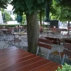 Nach Beendigung der Formalitäten plagte uns der Durst, Hunger hatten wir eher weniger. Einen Platz im vollbesetzten Biergarten zu erwischen, war schon schwer. Schließlich gelang es uns, zwei Vierertische in Beschlag zu nehmen.