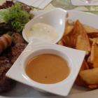 Meine Frau ging auf Nummer sicher und wählte Geflügel. Das klappt fast in jeder Gaststätte. Auch dieses Mal war das Bruststück saftig. Die Salate und Gemüse waren frisch und knackig und das Joghurt-Dressing passte dazu.