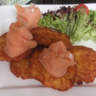 Die Tante (das Geburtstagskind) wählte (natürlich) Lachs. Sie war zufrieden und schaffte den Fisch. Die Ofenkartoffel war nicht so ihr Fall – sie mag lieber einfache Salzkartoffeln ohne alles. Der Salat war für sie in Ordnung.