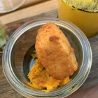 Gebackener Ziegenkäse vom Vulkanhof in der Eifel mit Kürbischutney. Und wieder war das eine tolle Kombination von Orient zu Mosel! So durfte es weiter gehen.