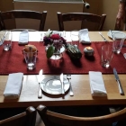 Also standen wir kurz vor 18 Uhr vor oben gezeigtem Haus und voller Neugier ging es hinein. Unsere Reservierung war schnell gefunden und in der vom Eingang aus gesehen rechten Gaststube fand sich unser Tisch.
