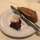 ein dunkles Baguette mit einer Kräuterbutter, schlicht, Brot sicher nicht hausgebacken, aber frisch war es, und die Butter gut abgeschmeckt. Nach angemessener Wartezeit fragte die Dame nach meinen Speisewünschen und ich orderte Vor- und Hauptspeise.