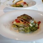 Die Hauptspeisen wurden serviert. 3 x gebratenes Bodenseeforellenfilet auf einem warmen Salatbett mit Muschel-Nudeln. Aber noch bevor der Teller meinen Platz erreichte, erinnerte sich der Kellner an meine Unverträglichkeiten. Ja, da war doch was...