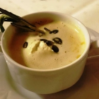 Die Suppen waren gerade noch heiß genug und schmackhaft. Wenn auch bei der Kürbissuppe der Ingwergeschmack doch etwas zu kurz kam. Dem Deko-Rosmarinzweig war wohl unter dem Salamander schlecht geworden, er hing ganz schon durch. Falls er zum Umrühren gedacht war: untauglich.