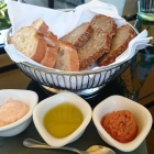 Ein Körbchen mit lauwarmen Brot. Frisches Baguette und ein saftiges Körnerbrot. Dazu Spundekäs, feinstes Olivenöl und ein Tomaten-Thunfisch-Aufstrich. Ich kann wirklich nicht sagen, was am Besten schmeckte. Unsere Erwartungen stiegen.