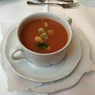 Optisch verlockend, konnte die Gazpacho gerade nach der Räucheraal Terrine nicht so recht überzeugen. Es war eindeutig zu ängstlich gewürzt worden. Das habe ich schon sehr viel schmackhafter gehabt. Nicht so überzeugend.