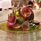1: Thunfischbauch mit Spitzkohlsud, Meerrettich & Mandarin Kaviar