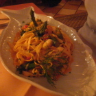 Essen und Trinken: Meine Frau trank ihren gewohnten "Amaro Averna" (EUR 4,50) und anschliessend "Prosecco Aperol" (EUR 4,70), ich als Chauffeur vom Dienst ein "Karlsberg Ur-Pils" (0,5l EUR 4,40). Als Vorspeise nahmen wir beide Suppe; sie die "Kartoffelsuppe mit Steinpilzen" (EUR 6,50) und ich die "Krabbensuppe" (EUR 7,50). Als Hauptgericht wählte sie "Fettuccine mit Lachs und zweierlei Spargel" (EUR 13,50), ich entschied mich für die "Ravioli mit Flusskrebsen in Safransauce" (EUR 14,50).