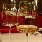 Neben dem obligatorischen Mineralwasser (Taunusquelle 8€) kam bei einem gereiften, fantastisch frisch gebliebenen Jahrgangs-Champagner (Feuillatte, Palmes d‘Or, 2006) und einem mächtigen kalifornischen Chardonnay (Grgich Hills, 2014) niemals Durst, dafür große Begeisterung auf. Kleine, aber wirklich interessante und fair kalkulierte Weinkarte.