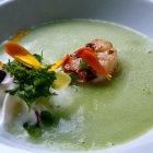 Aber die Flaschenweine, die mir gefallen, habe ich hier schon mehrfach getrunken. Also Zeit für neue Erfahrungen! Nicht neu sind die fairen Preise: Das komplette 6-Gang-Menü kostet 65 Euro, die Begleitung im Glas 45 Euro; es wird großzügig eingeschenkt. Aufgesprudeltes Leitungswasser (Pardon: Landhauswasser!) wird immer noch mit 3,8€ berechnet.