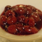 Der Gang war schmackhaft, aber sicher nicht der stärkste im Menü. Die Kirschen waren in einer aromatisierten Sauce heiß angemacht. Eingemachte Früchte werden in Saft erhitzt, mit Gewürzen verfeiert (Zimt, Nelke etwa) und eingedickt (wahrscheinlich Stärke). So könnten sie auch zur Kaffeetafel am Nachmittag zu Waffeln angeboten werden. Die Sahne auf dem Eis passte für mich sogar besser zu den Kirschen.