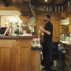 Drinnen waren für uns Tische im linken Bereich eingedeckt. Geradeaus geht es zur Küche. Und rechts steht die große Theke und daran vorbei ein weiterer geräumiger Gastraum. Dort muss man auch her, wenn es zum Sanitärbereich geht.