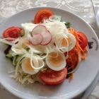 Italienischer Salat, klein (verschiedene Salatsorten mit Karotten, Weißkraut, Gurken, Schinken, Käse, Ei Tomaten und Zwiebeln) - 6,00 €