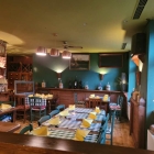 Bereits am Eingang des Restaurants wurden wir von einem jungen, südländischen Herrn begrüßt. Er checkte unsere Reservierung, und begleitete uns zu unserem Platz im Restaurant. Das Restaurant ist im gemütlichen dörflichen italienischen Stil eingerichtet. Auf rustikalen, farbigen Holzstühlen sitzt man mit einer gut gepolsterten Sitzunterlage sehr gut. Die rustikalen Tische sind ausreichend groß um auch große Pizzen problemlos zu servieren. Die Wände sind in türkis gehalten, verschiedene Wein-und Olivenölspezialitäten verzieren die Abschlusskante der Wandvertäfelung.