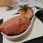 Zuvor gab es auf gesonderte Bestellung hin noch ein mild-cremiges Pflaumensorbet (4,5€), das durch durch Passionsfrucht-Kerne erfrischend aufgepeppt wurde