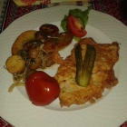 Als Hauptspeise wählte meine Frau den Ukrainischen Hähnchentopf mit bunten Paprika-und Kartoffelstücken in einer Kräuterrahmsoße für 9,90 €, meine große Tochter wählte Schweinemedallions mit Tomaten-Paprika-Käse-Sauce, dazu hausgemachte Kroketten für 12,80 €, die kleine wünschte sich die Russischen Buletten mit Knoblauch-Bratkartoffeln, dazu bunter Salat, gereicht mit 2 cl russischen Wodka für 9,90 €. Den Wodka sollte die Chefin aber bitte doch gleich dem Vati servieren…… Ich wählte ein Ukrainisches Schweineschnitzel „Seljanska Vtiha“ mit Drillingskartoffeln, dazu selbst eingelegte Tomaten und Gurken für 10,80 €.