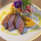 Die gewählte Zubereitungsart machte die aromatischen Tranchen der Hüfte so saftig und zart, dass ein Messer zum Zerteilen nicht einmal notwendig war. Das Püree war ebenfalls sehr fein und cremig. So lieferte der knackige, süß-säuerliche Salat wieder eine willkommene textuelle Abwechslung.