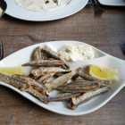 Mit Prosecco für 4 Euro angestoßen, ging es an die Wahl der Speisen. Auf der Extrakarte ein Polpogericht für 18,90 Euro, an dem ich nicht vorbeikonnte. Sehr ungewöhnlich die Zubereitung, denn der Tentakel mit Körperstück war paniert worden, bevor er wohl ins Fett glitt. Geschmacklich hat das nichts gebracht und ein gewisser gummihafter Schneidwiderstand zeigte, dass der Garzustand nicht optimal war. Darunter eine weiße Soße und darüber frittierte dünne Zwiebeln. Insgesamt eine Komposition und Zubereitung, die mich nicht überzeugen konnte. Gegenüber klassisch Bruschetta, die angesichts der Menge mit 8,50 Euro sehr fair bepreist und schmackhaft waren.