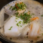 Ich hatte mich für die Fischsuppe Seeterrassen entschieden. In einem geschlossenen Keramiktopf wurde mir eine dampfend heiße und klare Fischsuppe serviert.