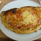 Etwa zwei Minuten später bekam ich dann auch meinen Teller mit einer schönen großen Calzone, deren Teig nur stelleweise etwas dunkel war. Bei dieser speziellen Pizza ist es ja oft so, dass sie außen schon fast verkohlt, innen aber noch nicht gar ist. Hier war aber alles in Ordnung, der Teig war außen knusprig und der Inhalt war heiß und saftig. Der Geschmack war ebenfalls sehr gut, da gab es überhaupt nichts zu meckern. Die große Calzone war dann auch genug für meinen Appetit, ein Reststück von den Meeresfrüchten musste ich auch noch übernehmen.