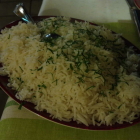 Eine ziemlich große Platte mit gekräutertem Reis und eine Schüssel mit Fladenbrot wurden direkt auf den Tisch gestellt, dann verschwand er wieder nach hinten.