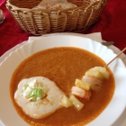 Rote Curry-Kokossuppe m. Garnelenspießchen u. Baguette - 5,80 €