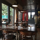 Es war geöffnet. Viel war nicht los und ich konnte mir einen Tisch aussuchen. Der Wirt liebt offensichtlich das vereinigte Königreich, vieles in der Dekoration bezog sich auf unsere die EU verlassenden Nachbarn. Draußen ein Londoner Taxi vor Tür, im Eingang eine rote Telefonzelle.