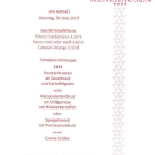 Das Essen war in Menüform angeboten, wobei die Suppe und das Dessert feststanden. Beim Hauptgang konnten wir zwischen drei Alternativen wählen, ich verweise hier auf die gescannte Menükarte.