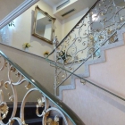 Nach dieser Stärkung sah ich mir die weiteren Räume an. Der untere Raum, in dem wir saßen, sieht nicht unbedingt „barock“ aus. Aber im rückwärtigen Raum führt eine Treppe mit „barockem“ Geländer nach oben.