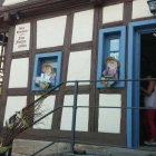Der Biergarten ist kein Biergarten im eigentlichen Sinne, sondern eher eine Art Terrasse. Die obligatorischen Bäume sucht man vergebens. Glücklicherweise sitzt man hier nicht auf Bierbänken, sondern auf Holzstühlen. Diese waren für einen BIergarten wirklich bequem, viel besser als Bänke ohne Rückenlehnen. Dafür hat man einen wunderbaren Blick auf das Alte Brauhaus, ein aufwendig restauriertes Fachwerkhaus. Auch die Nachbargebäude sehen schön aus.