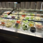Im großzügig bemessen Eingangsbereich befindet sich auf der linken Seite ein üppiges Salatbüffet mit allerlei Gemüseexponaten.